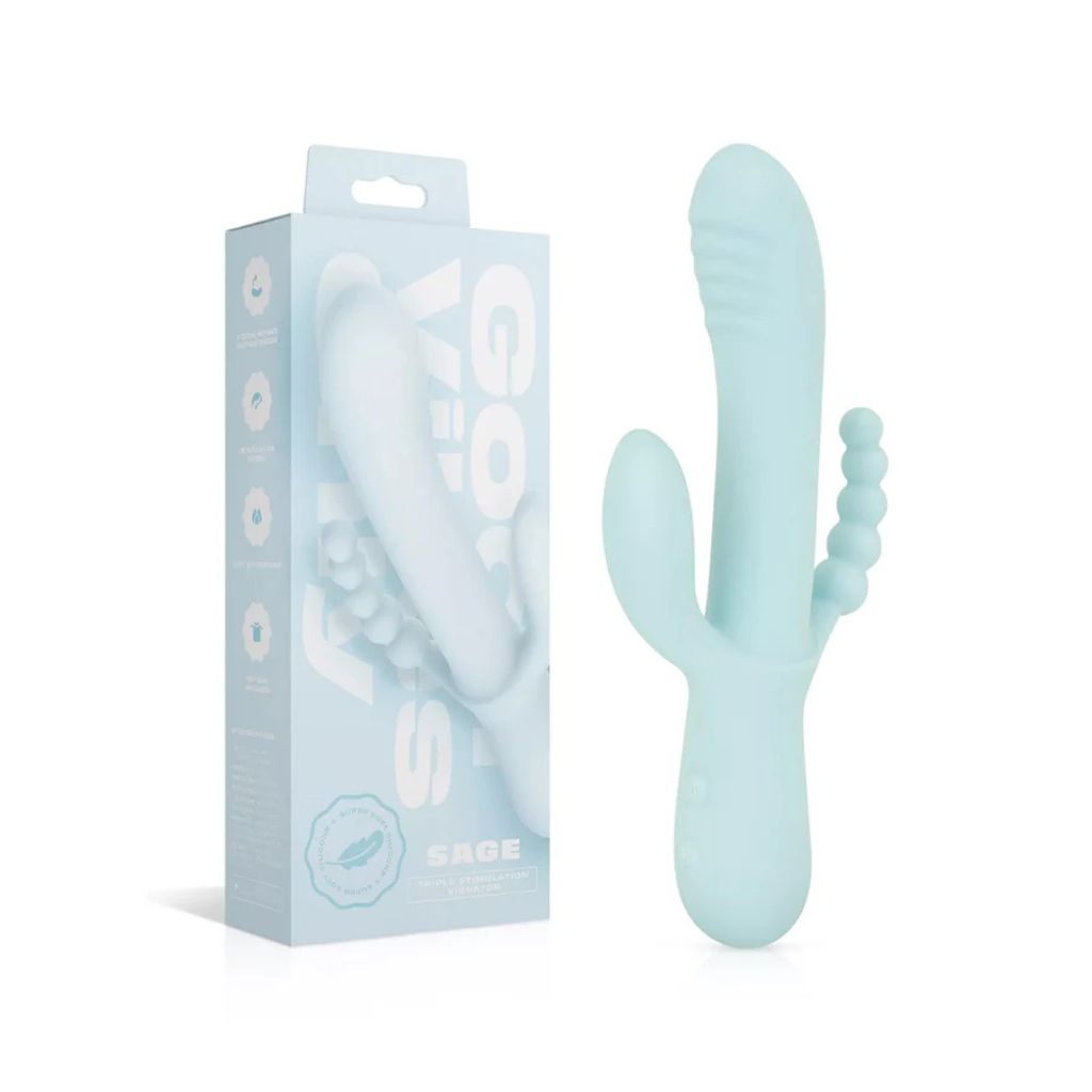 Why settle for one sensation when you can experience three? The Good Vibes Only – Sage Triple Stimulation Vibe in the serene Sage colourway is a masterpiece of ergonomic engineering, designed for those who seek a truly immersive intimate experience. This isn’t just a vibrator; it is a carefully calibrated instrument of pleasure that targets your most sensitive areas simultaneously.