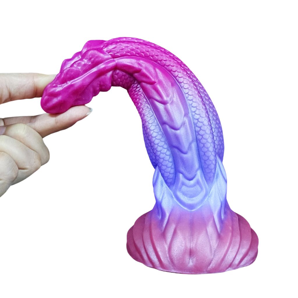 Command your pleasure with the Crimson Sovereign, the most regal addition to our Dragon Range. Bathed in a breathtaking gradient of royal magenta and deep twilight violet, this fantasy dildo is designed for those who appreciate the finer details of mythical craftsmanship. With its sleek, tapered head and dual-textured shaft, the Sovereign offers a sophisticated journey into the world of high-fantasy play.