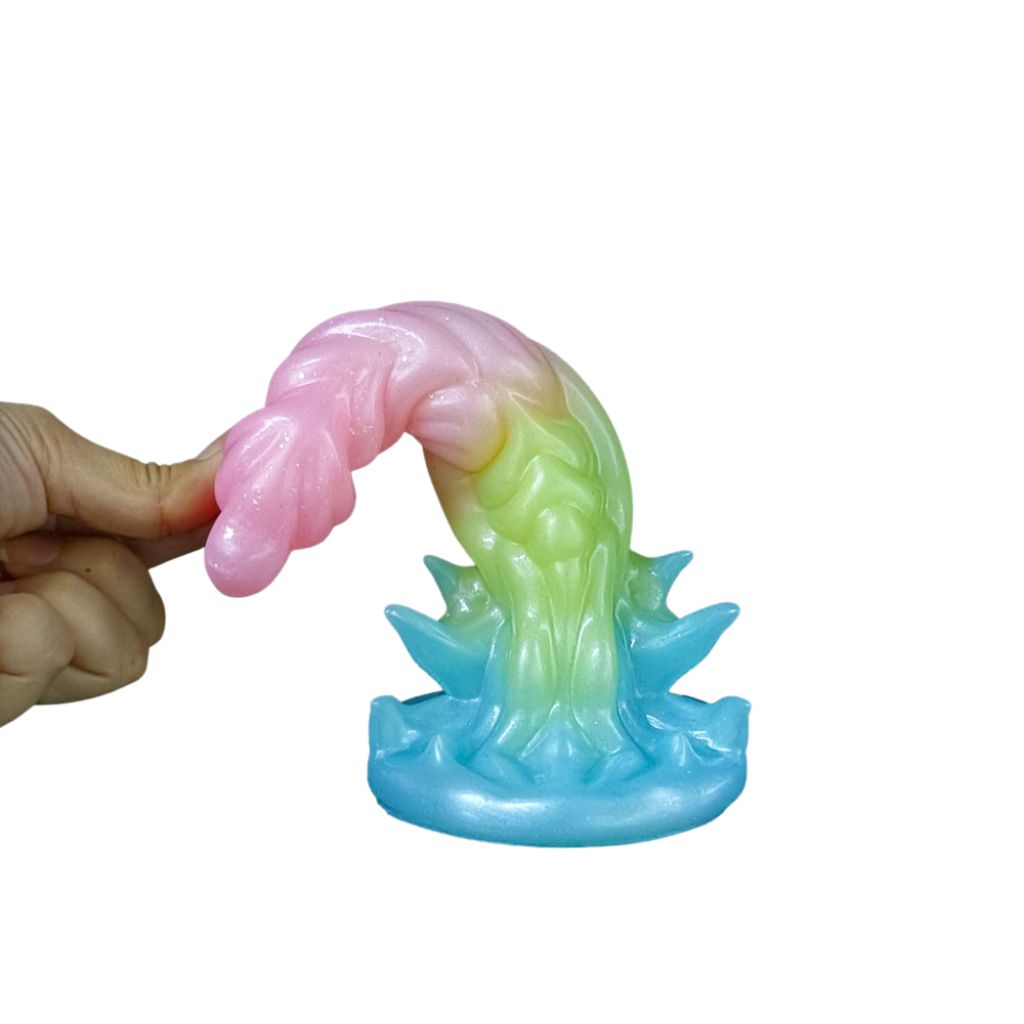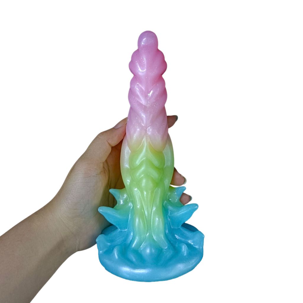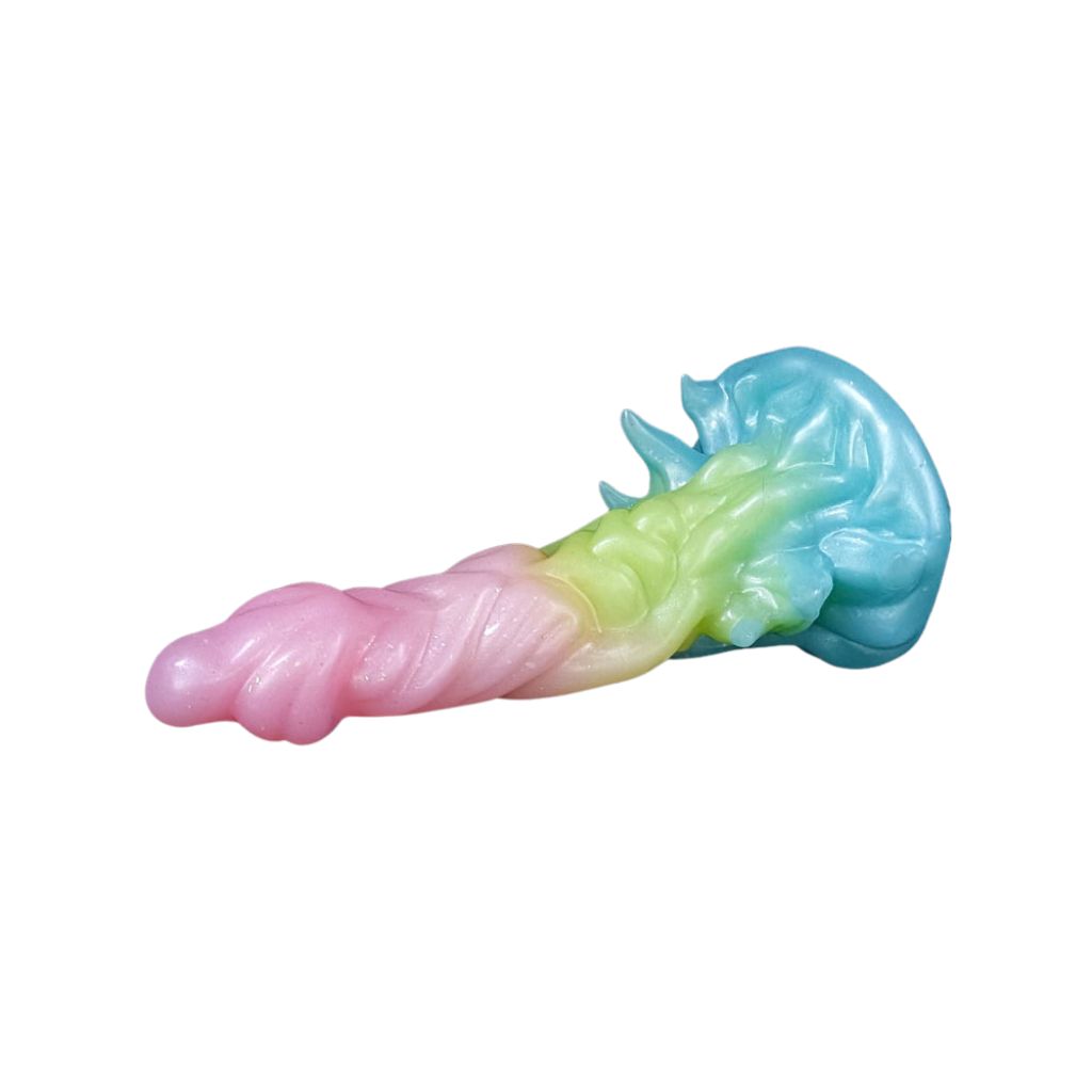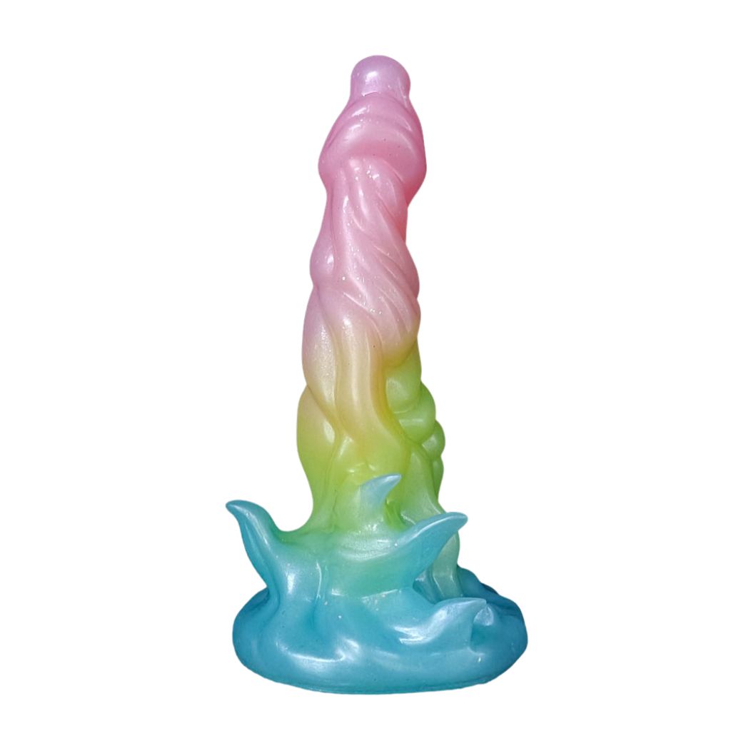 Ignite your deepest desires with the Dragon’s Ember, a masterpiece of fantasy and form from our signature Dragon Range. This isn’t just a dildo; it’s an invitation to an otherworldly adventure. Drenched in a shimmering tri-colour gradient of ethereal pink, neon lime, and aquatic blue, the Dragon’s Ember is designed for those who demand both visual artistry and high-performance pleasure.